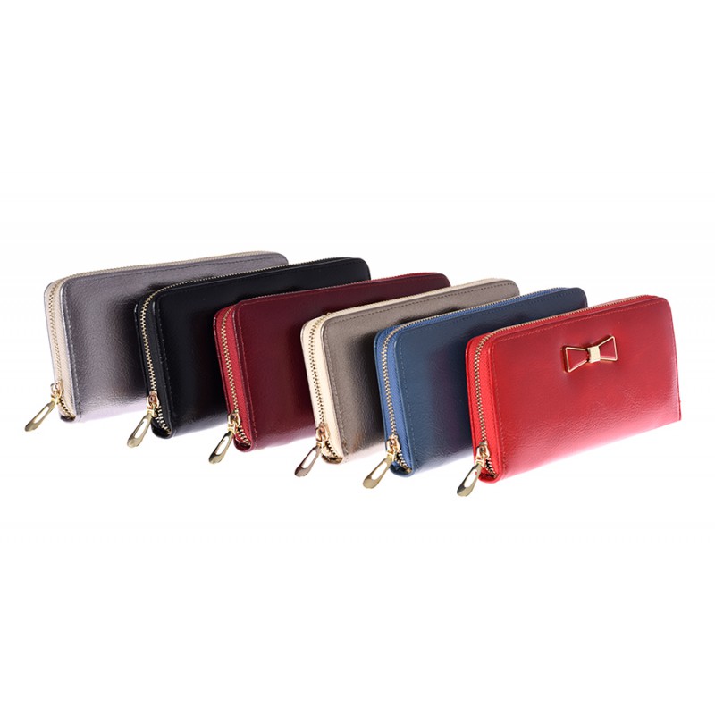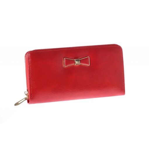 Portfel wykonany jest z dobrej jakości skóry ekologicznej. Posiada wygodne zapięcie na suwak oraz dekoracyjną kokardkę z przodu.